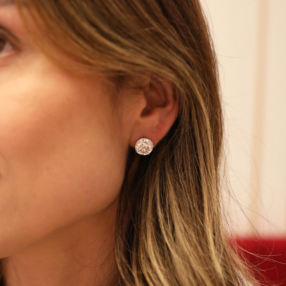 Peça em prata 925, banho de rodio e pedras moissanites cravejadas.