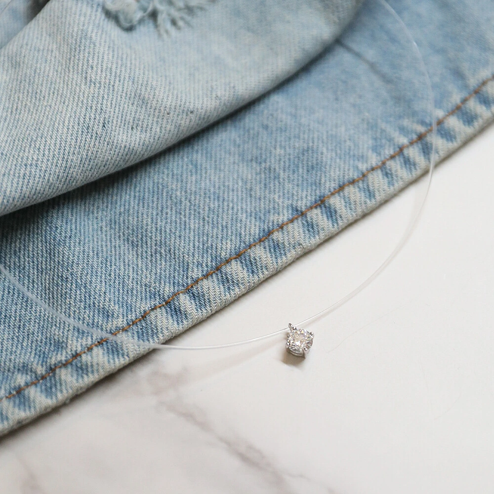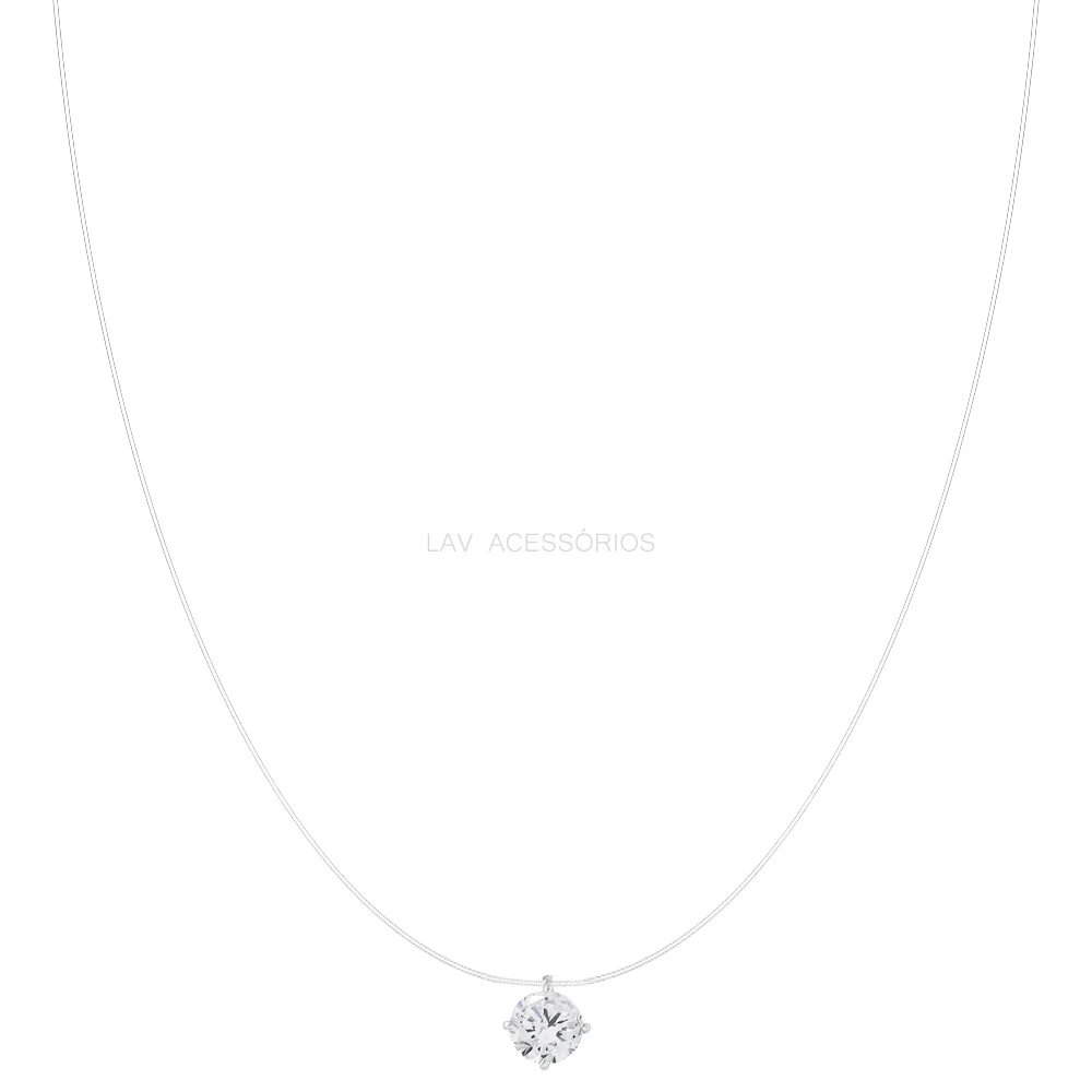 Peça em fio de silicone transparente, detalhes em prata 925, banho de rodio e pedra moissanite cravejada.