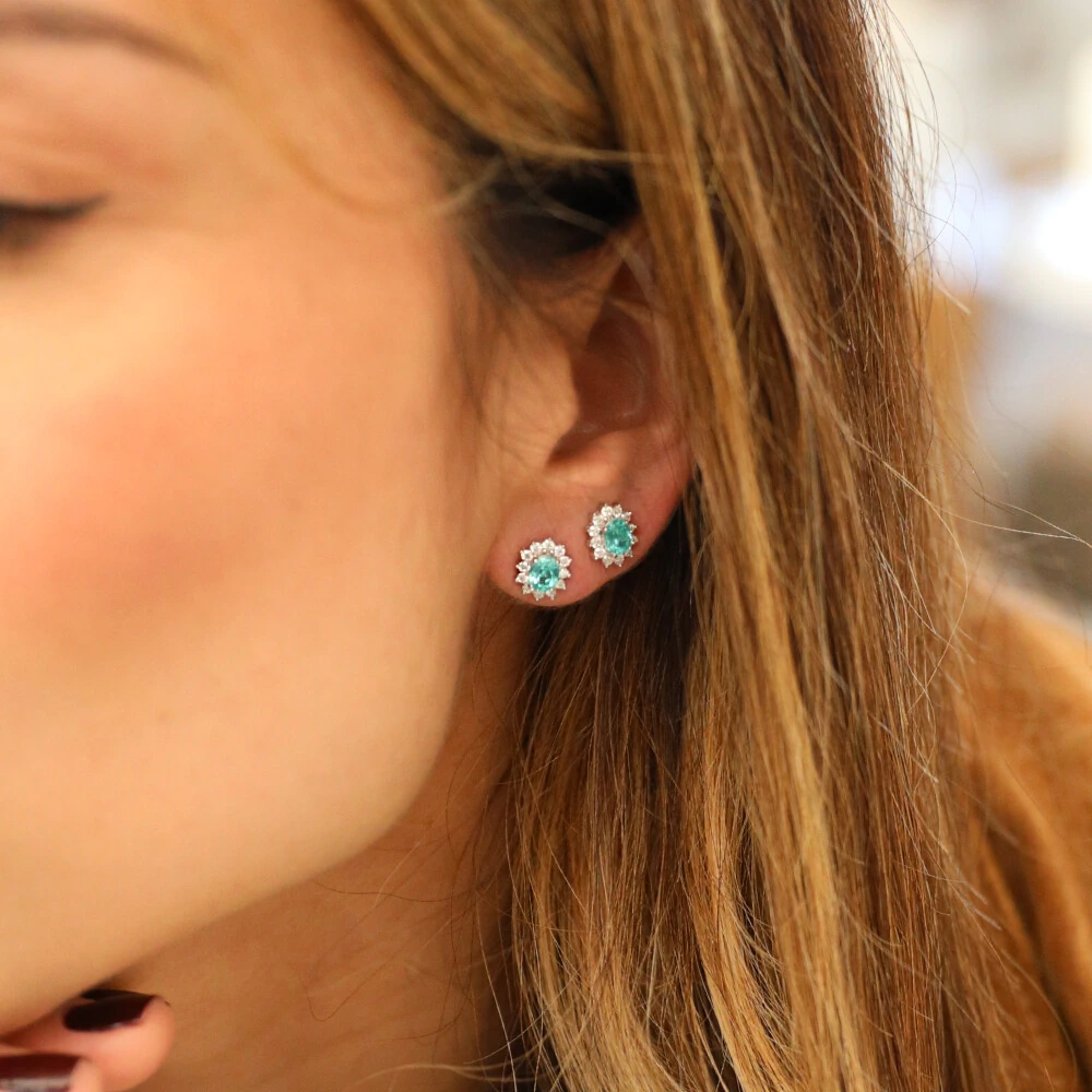 Peça em prata 925, banho de rodio, pedra lab grown turmalina e moissanites cravejadas.