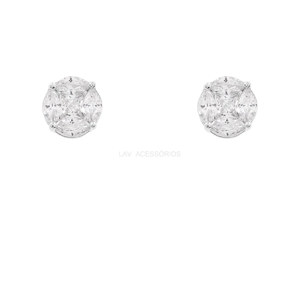 Peça em prata 925, banho de rodio e pedras moissanites cravejadas.