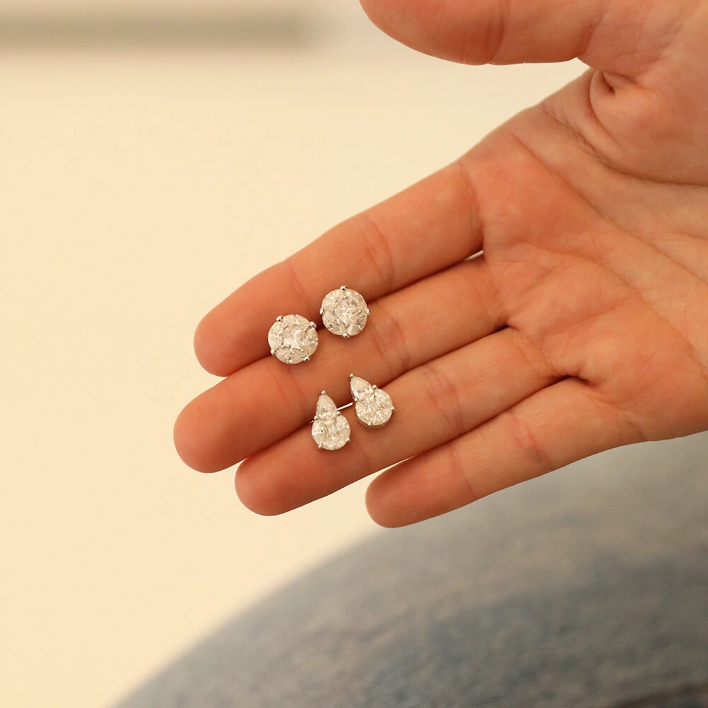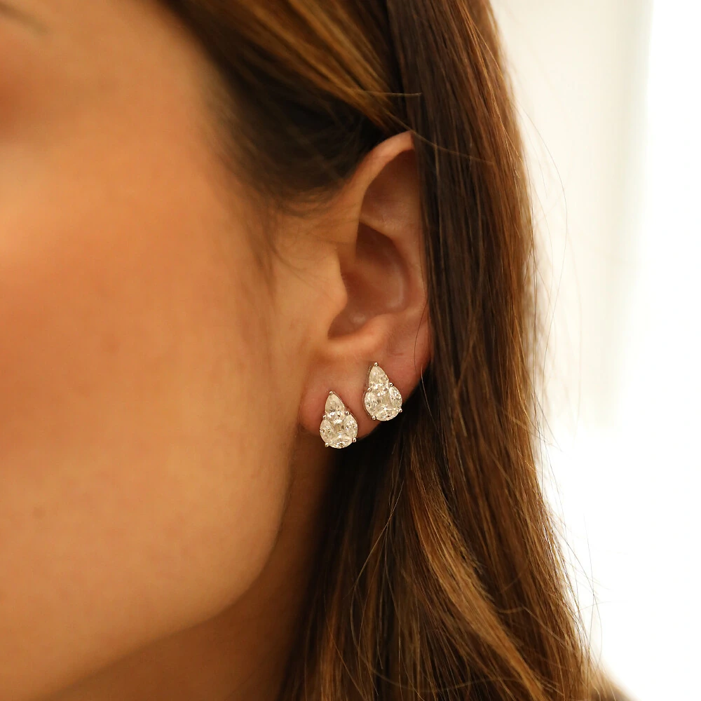 Peça em prata 925, banho de rodio e pedras moissanites cravejadas.