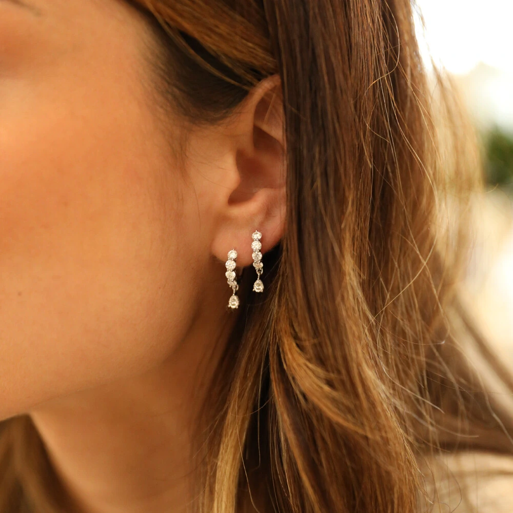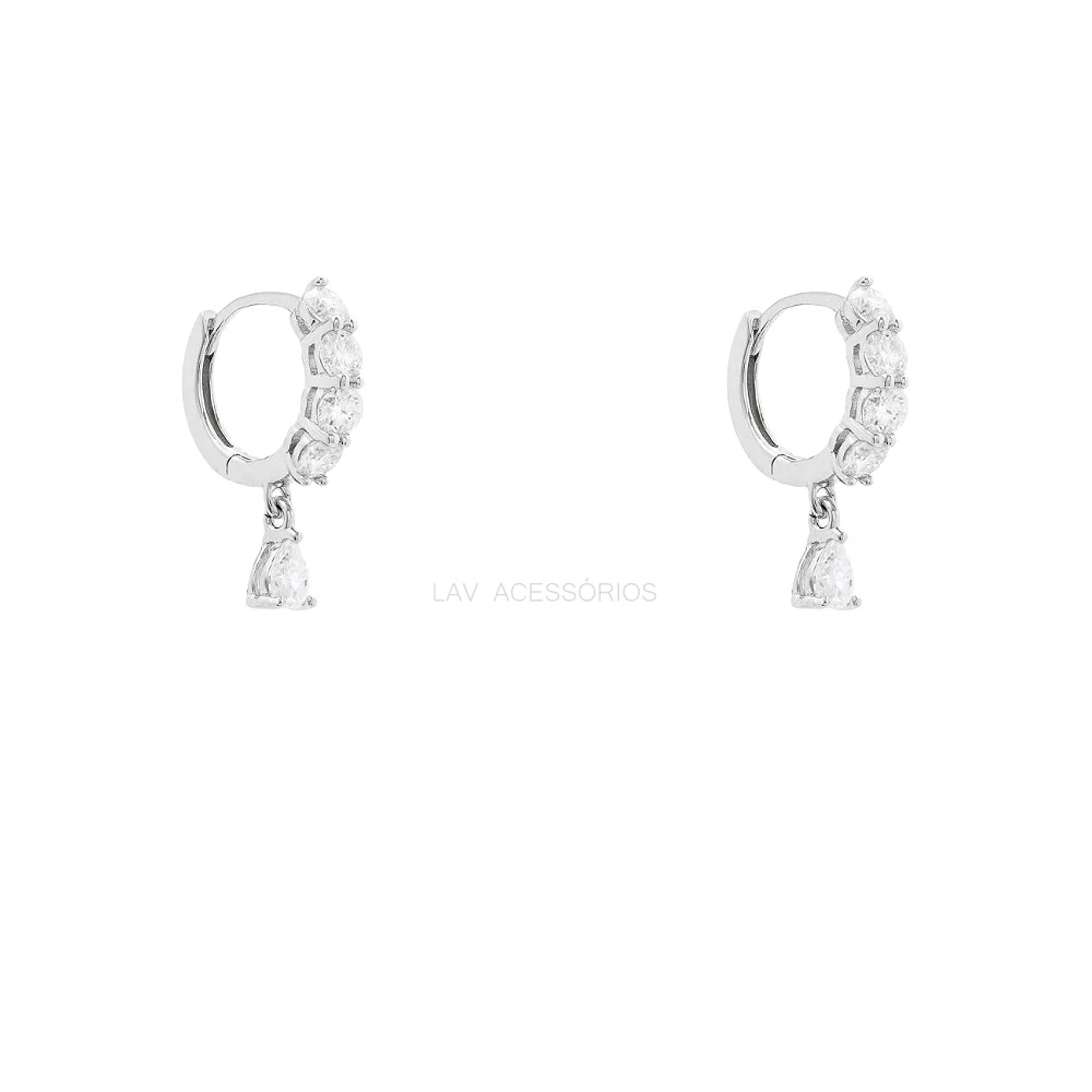 Peça em prata 925, banho de rodio e pedras moissanites cravejadas.