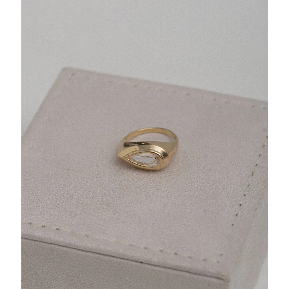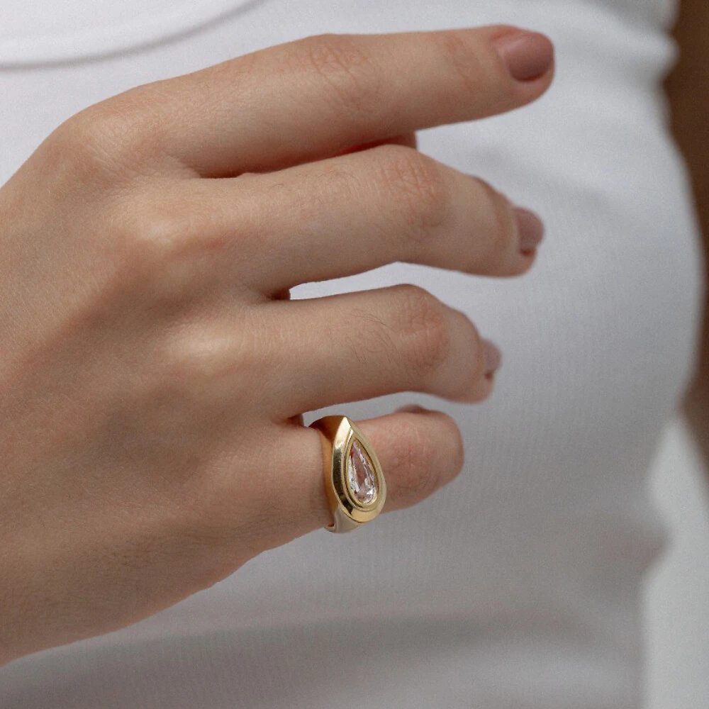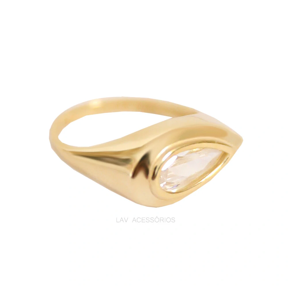 Anel Prata 925 Dedinho Gota Deitada Cristal Ouro
