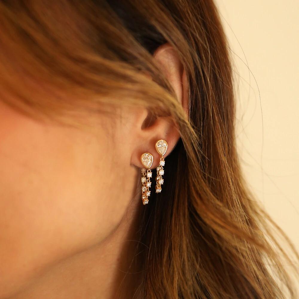 Peça em prata 925, banho de ouro 18k e pedras moissanites cravejadas.