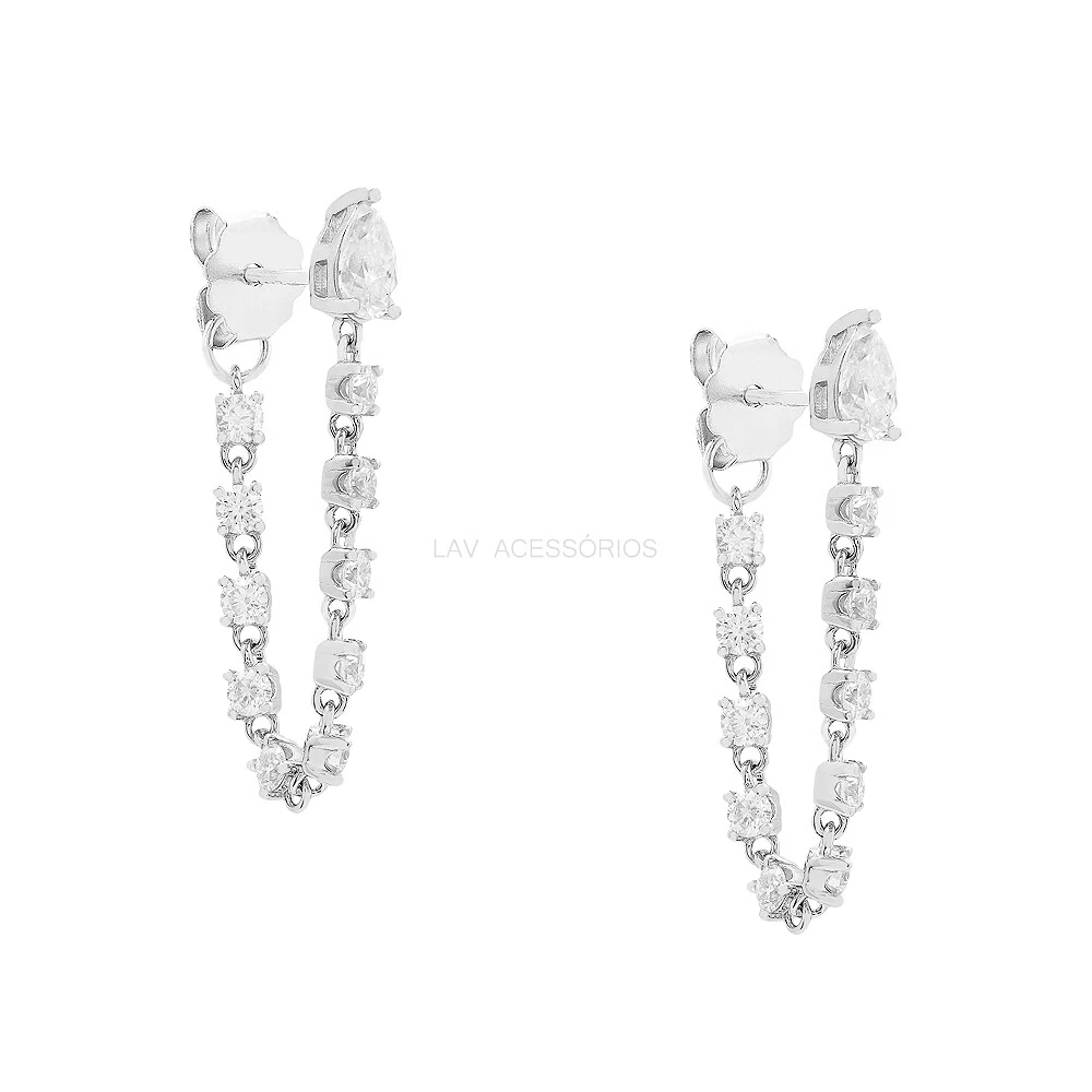 Peça em prata 925, banho de rodio e pedras moissanites cravejadas.