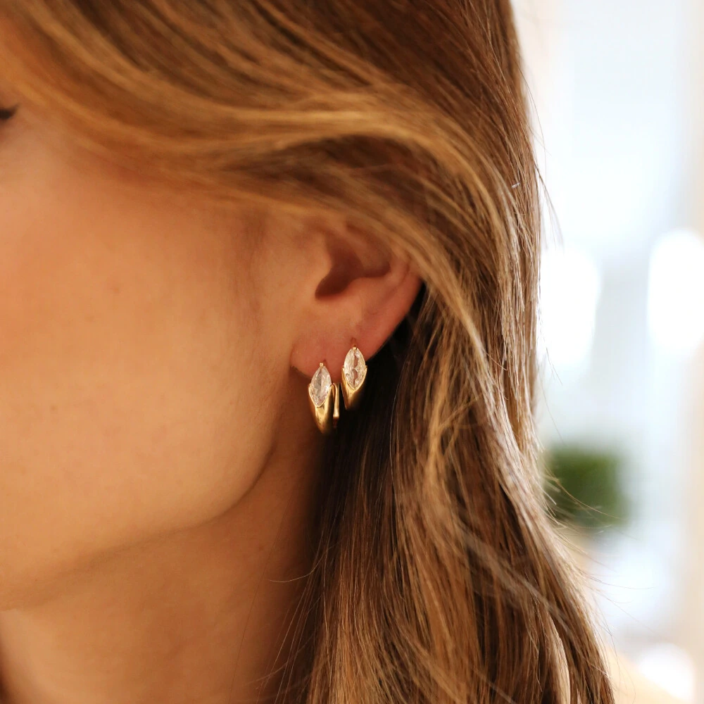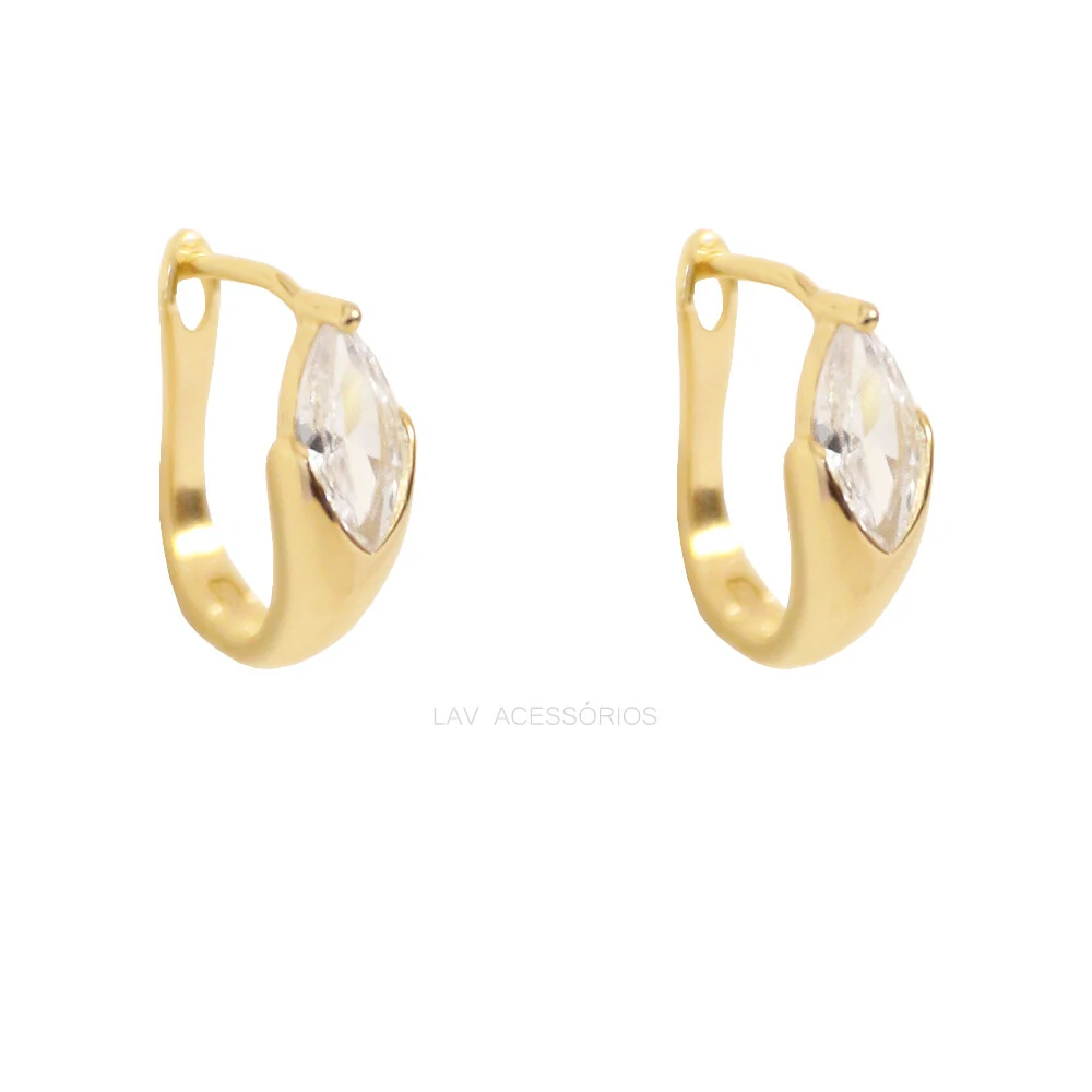 Peça em liga metálica, banho de paládio e ouro 18k. Detalhe em zirconia.