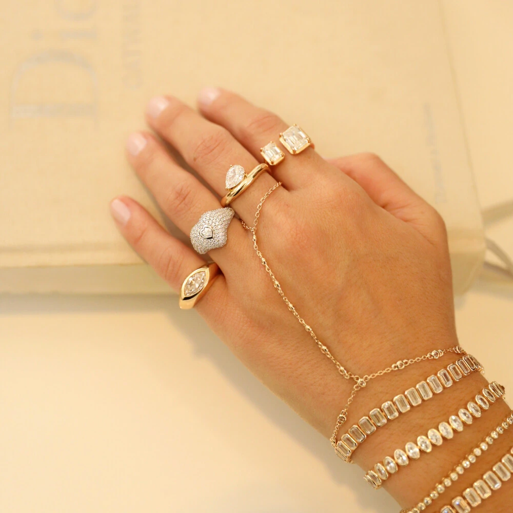 Peça em prata 925, banho de ouro 18k e pedra moissanite cravejada.
