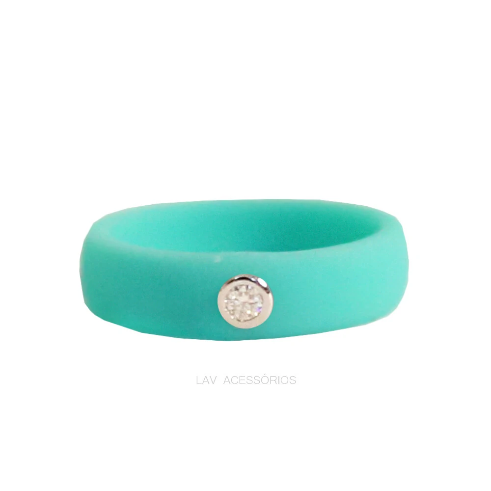 Anel Coolest Color Ponto Moissanite 3mm - Turquesa