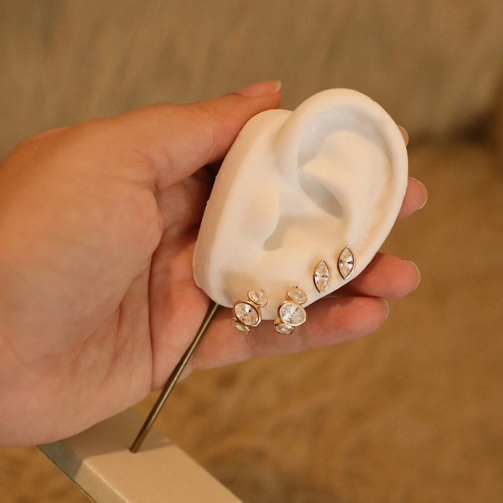 Peça em prata 925, banho de ouro 18k e zirconia lapidada cravejada.