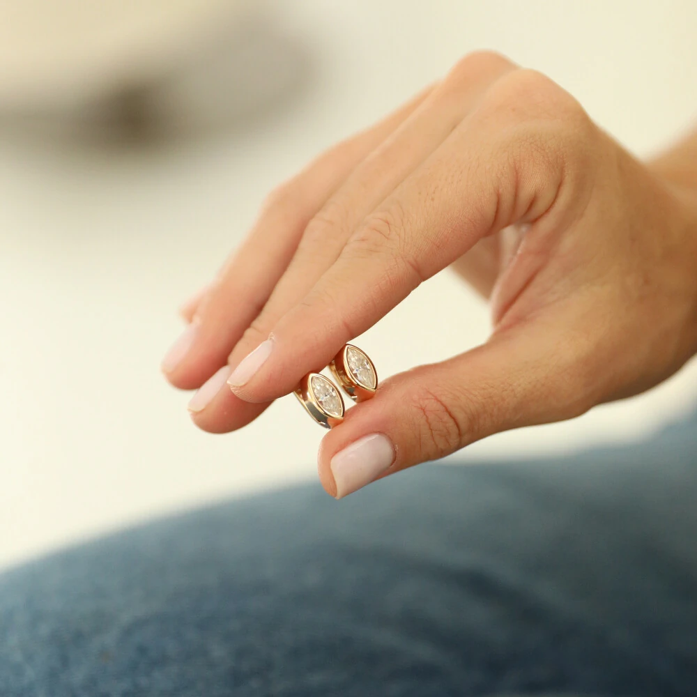 Peça em prata 925, banho de ouro 18k e pedra moissanite cravejada.