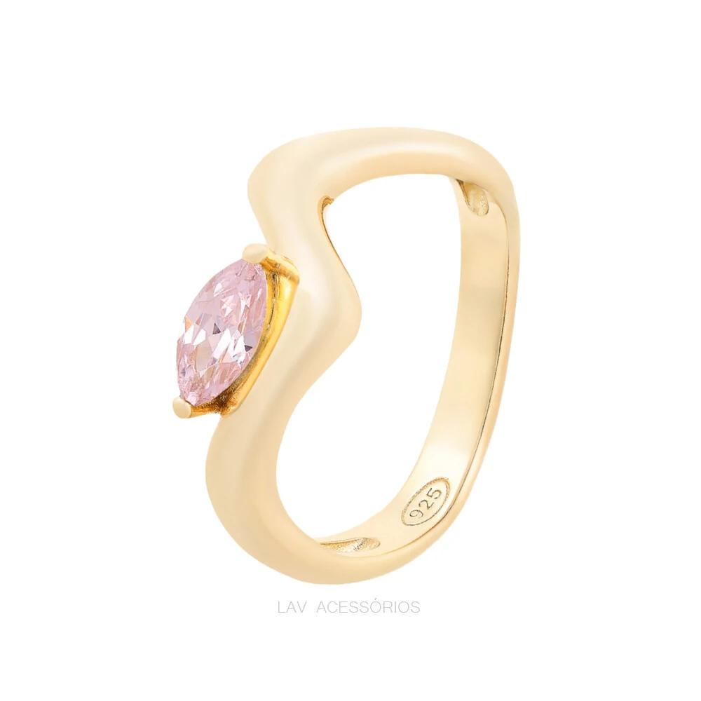 Anel Prata 925 Waves Cravejado Kunzita Ouro